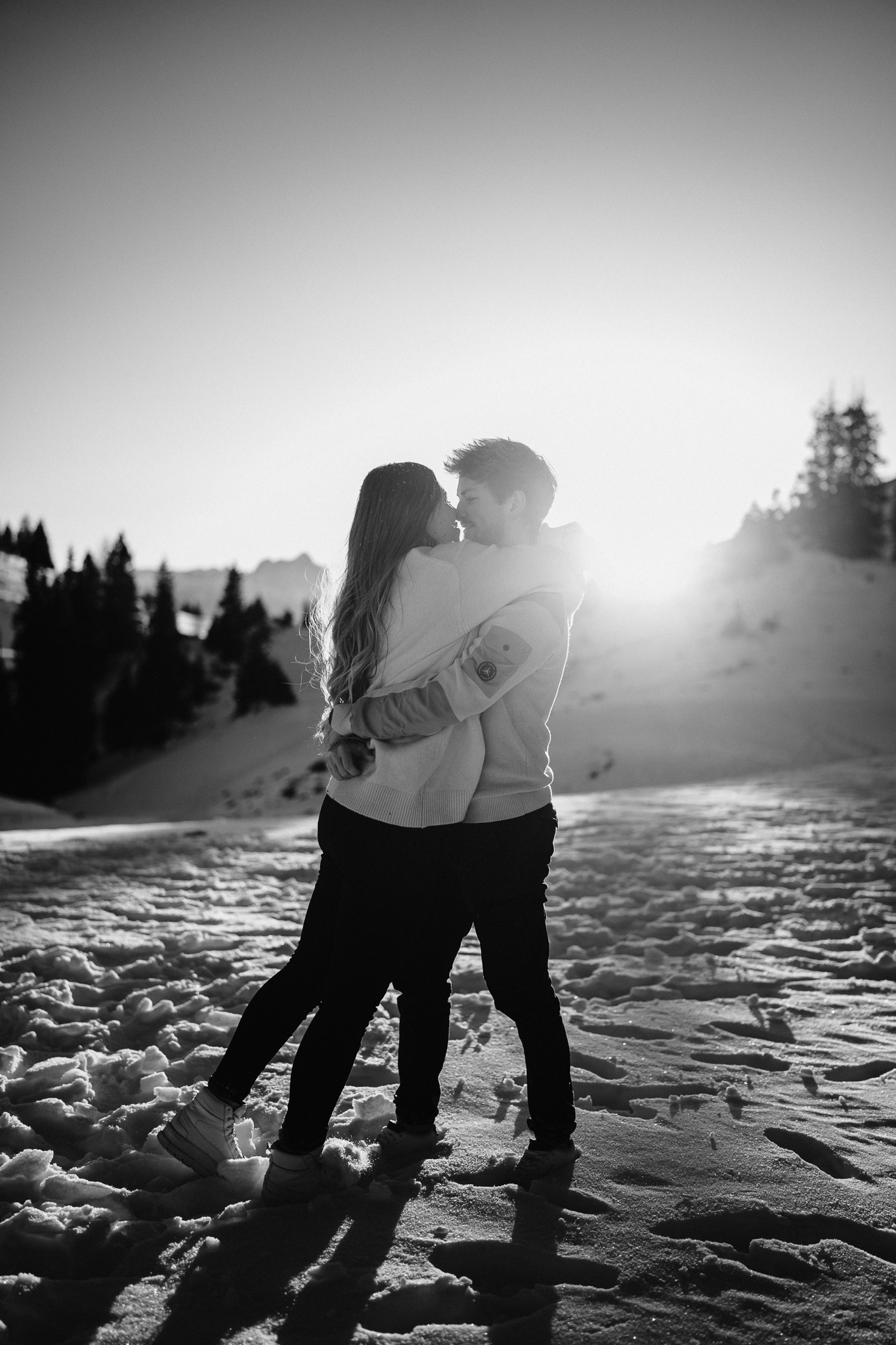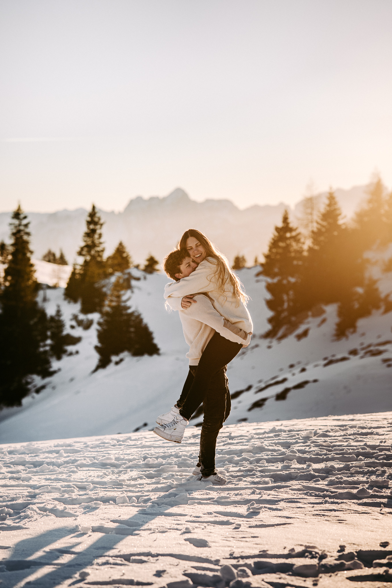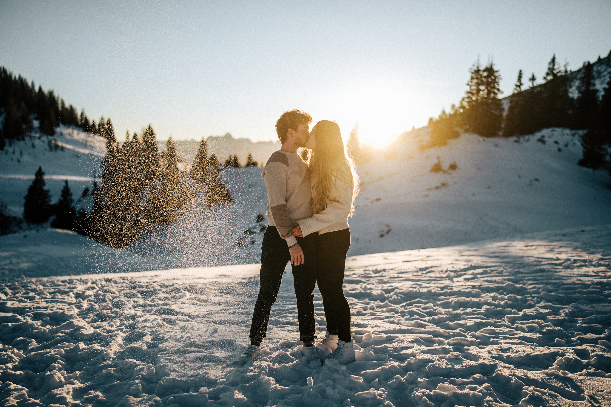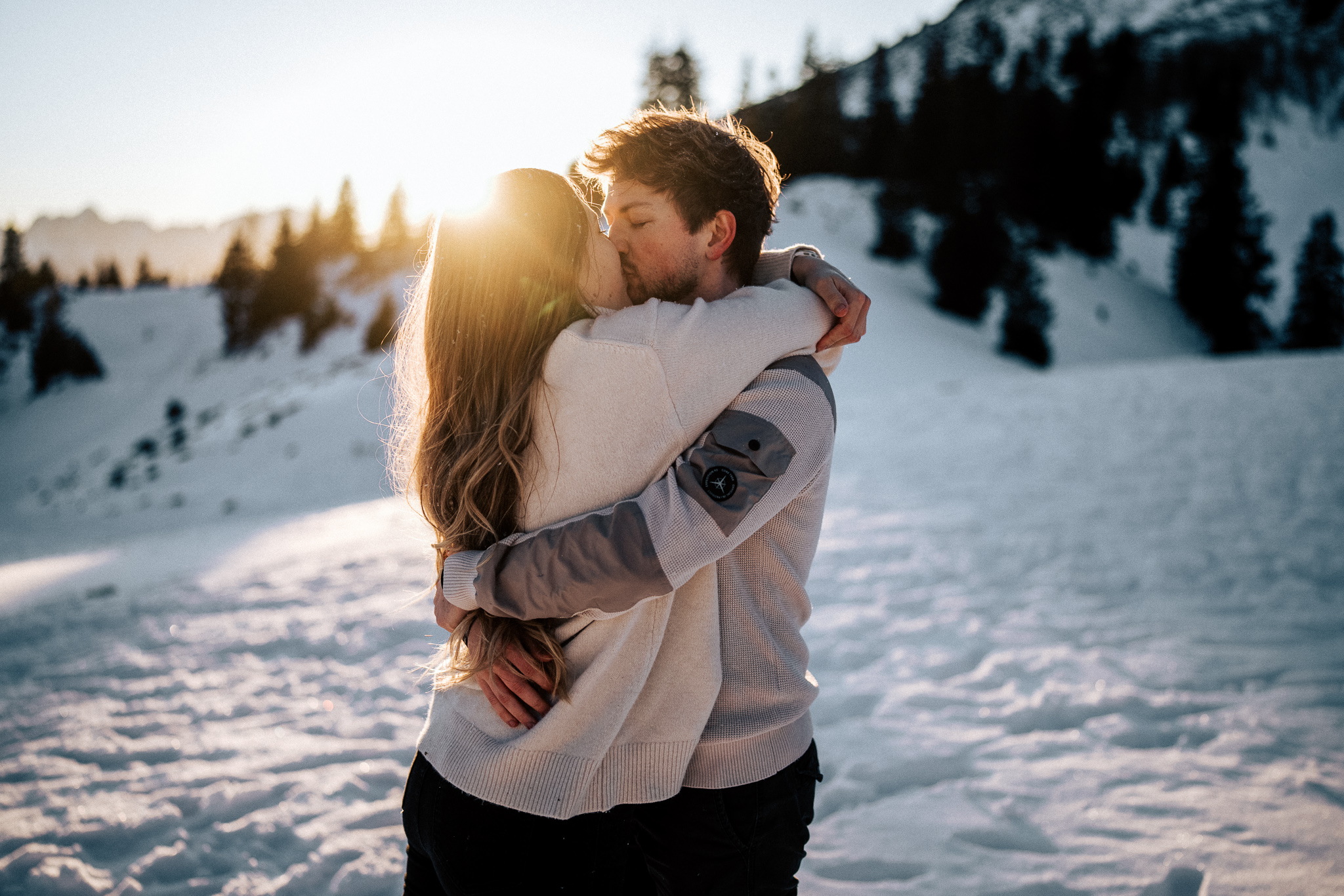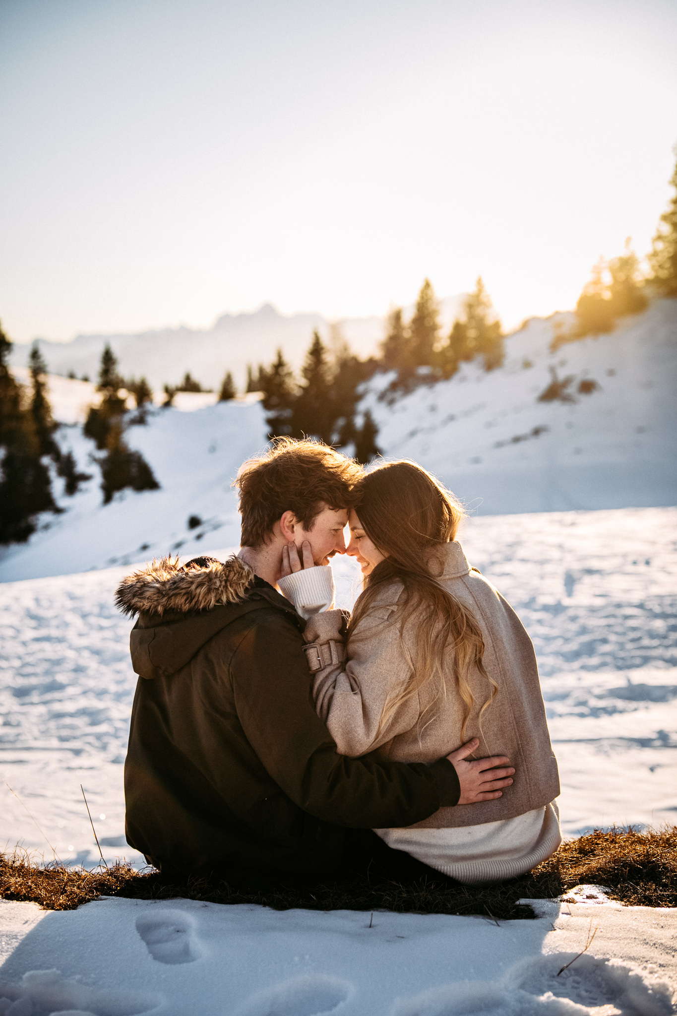 Ein Pärchenshooting im Winter hat seinen ganz eigenen Zauber. Besonders dann, wenn zwei Menschen der Kälte trotzen und gemeinsam in den Sonnenuntergang laufen. Genau so war es bei Jacqueline und Rafael. Inmitten einer traumhaften Winterkulisse mit Bergen, zauberhaftem Licht und eisigen Temperaturen sind authentische, warme und liebevolle Bilder entstanden.