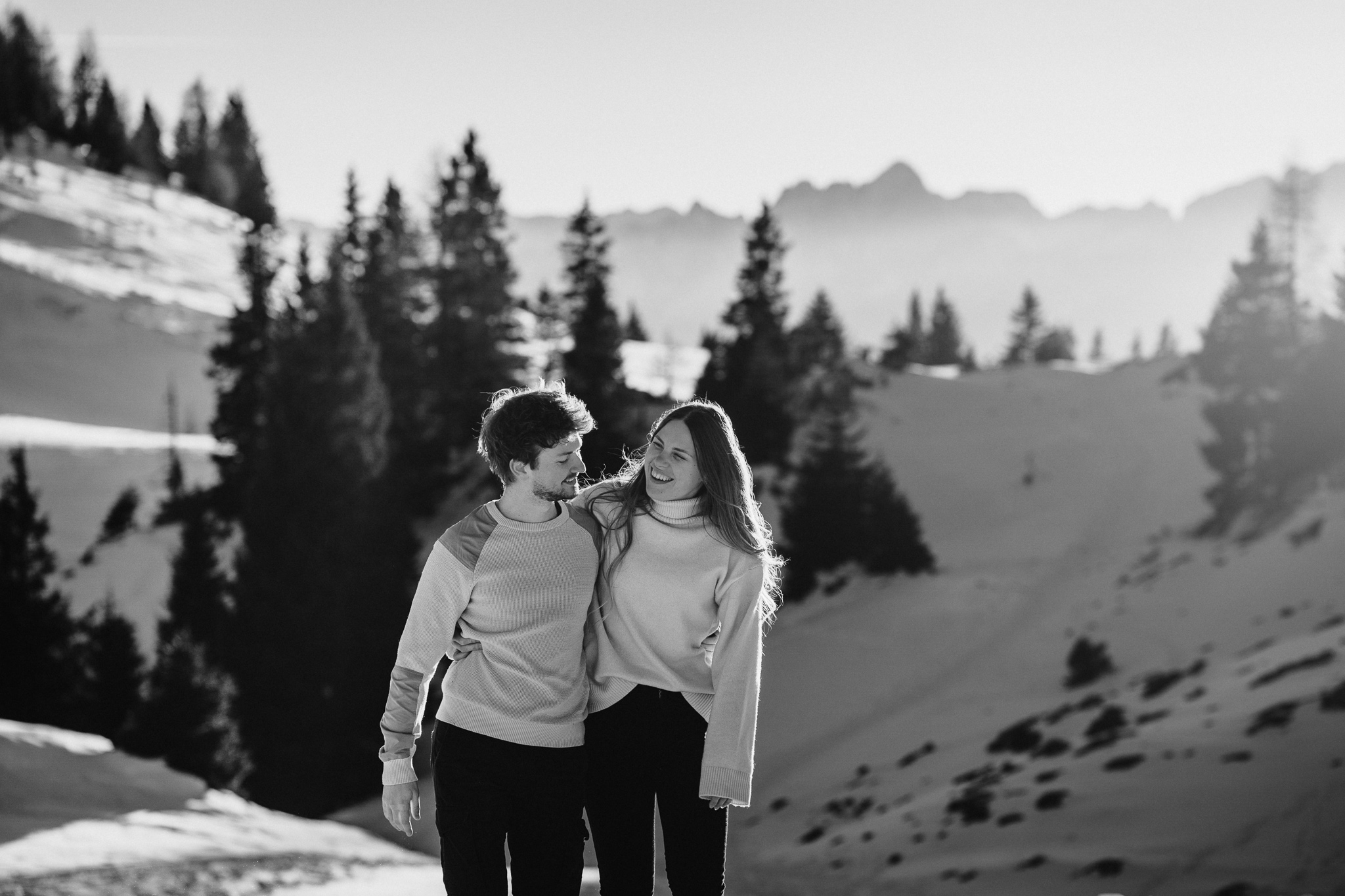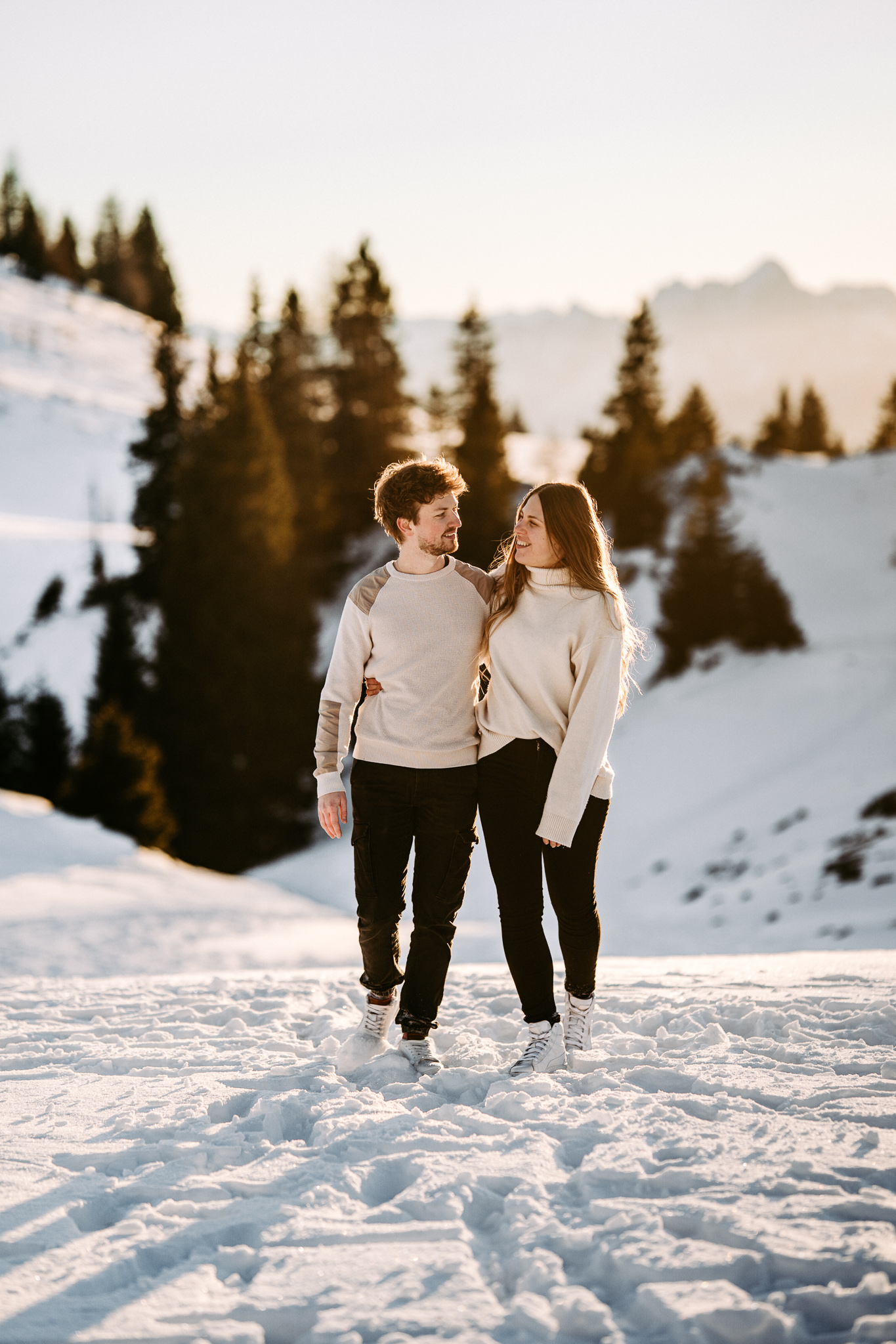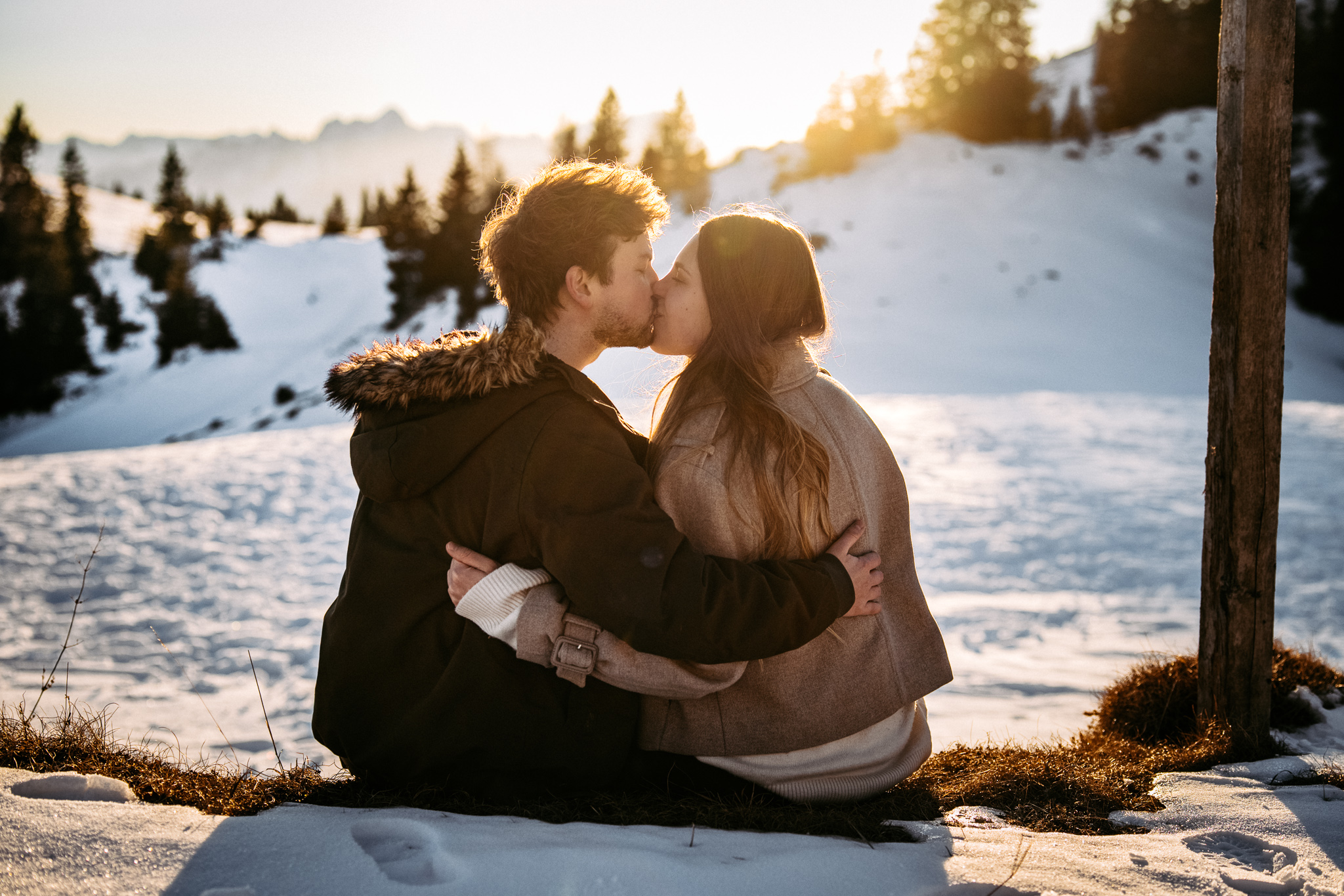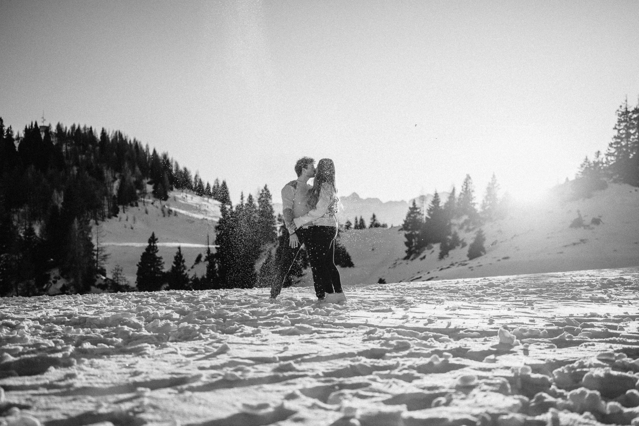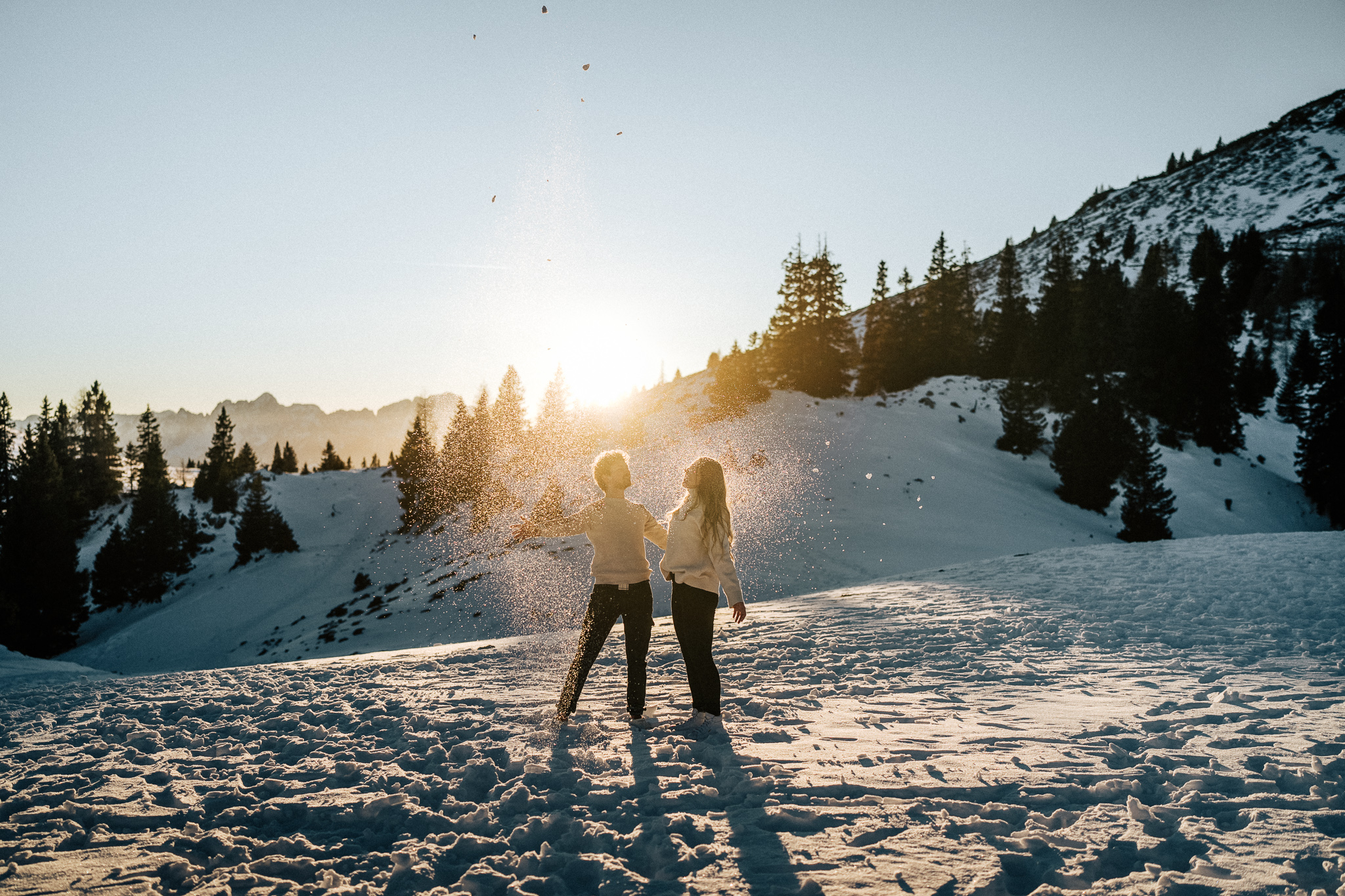 Ein Pärchenshooting im Winter hat seinen ganz eigenen Zauber. Besonders dann, wenn zwei Menschen der Kälte trotzen und gemeinsam in den Sonnenuntergang laufen. Genau so war es bei Jacqueline und Rafael. Inmitten einer traumhaften Winterkulisse mit Bergen, zauberhaftem Licht und eisigen Temperaturen sind authentische, warme und liebevolle Bilder entstanden.