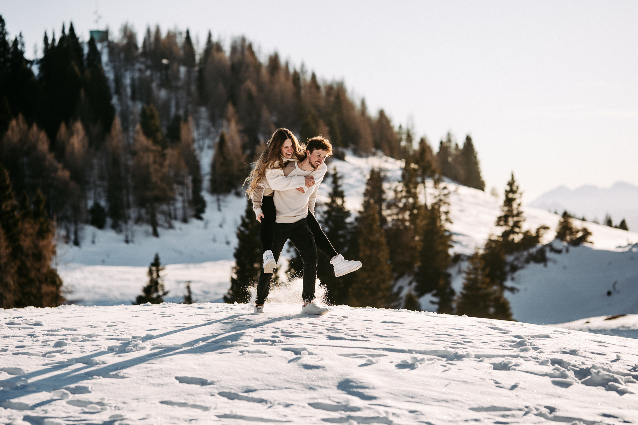 Trotz der Kälte war die Stimmung zwischen den beiden voller Nähe, Leichtigkeit und Lebensfreude. Es wurde gelacht, geschmust, getobt und einfach der Moment genossen. Genau diese echten Augenblicke machen ein Paarshooting so besonders. Ohne steife Posen, dafür mit viel Gefühl und natürlicher Verbindung.